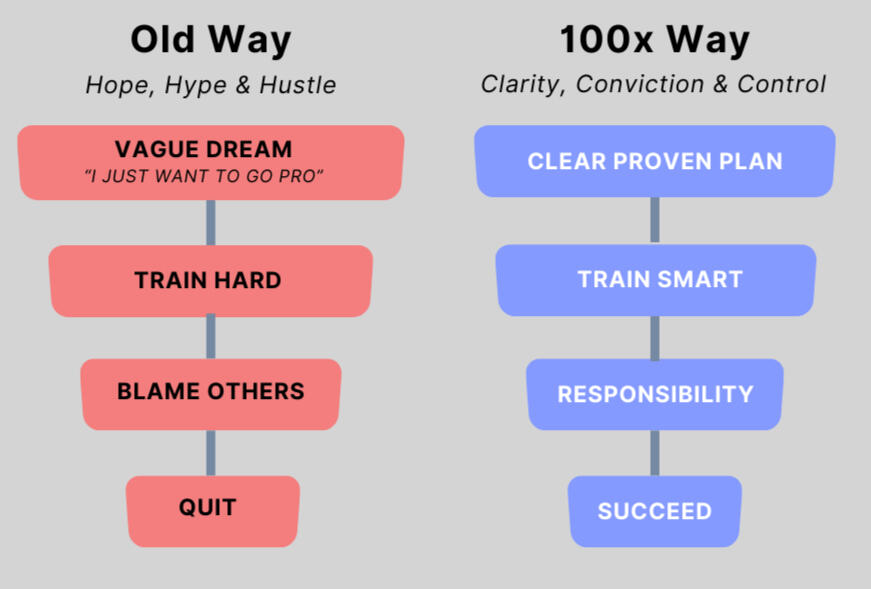 Whether you're starting from the bench, outside the system, or already grinding in the lower leagues…The 100x Framework works if you're willing to do the work.It’s the exact system used by players who’ve gone from overlooked to signing real pro contracts.